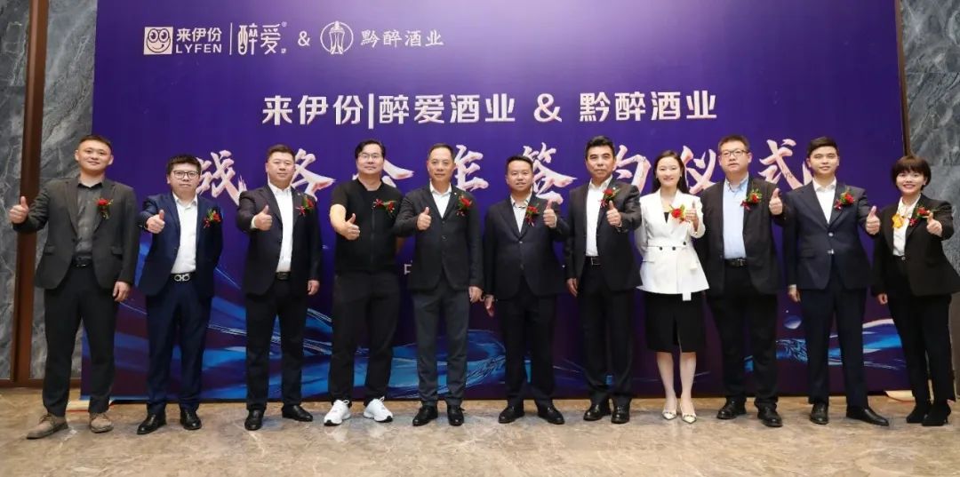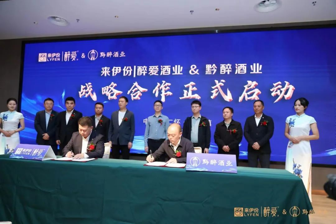 2023年11月3日,來伊份旗下上海醉愛酒業(yè)有限公司與貴州黔醉酒業(yè)(集團)有限公司戰(zhàn)略合作簽約儀式——暨“53°醉愛經(jīng)典醬香酒”新品發(fā)布會,在仁懷市溫泉大酒店宴會廳舉行。